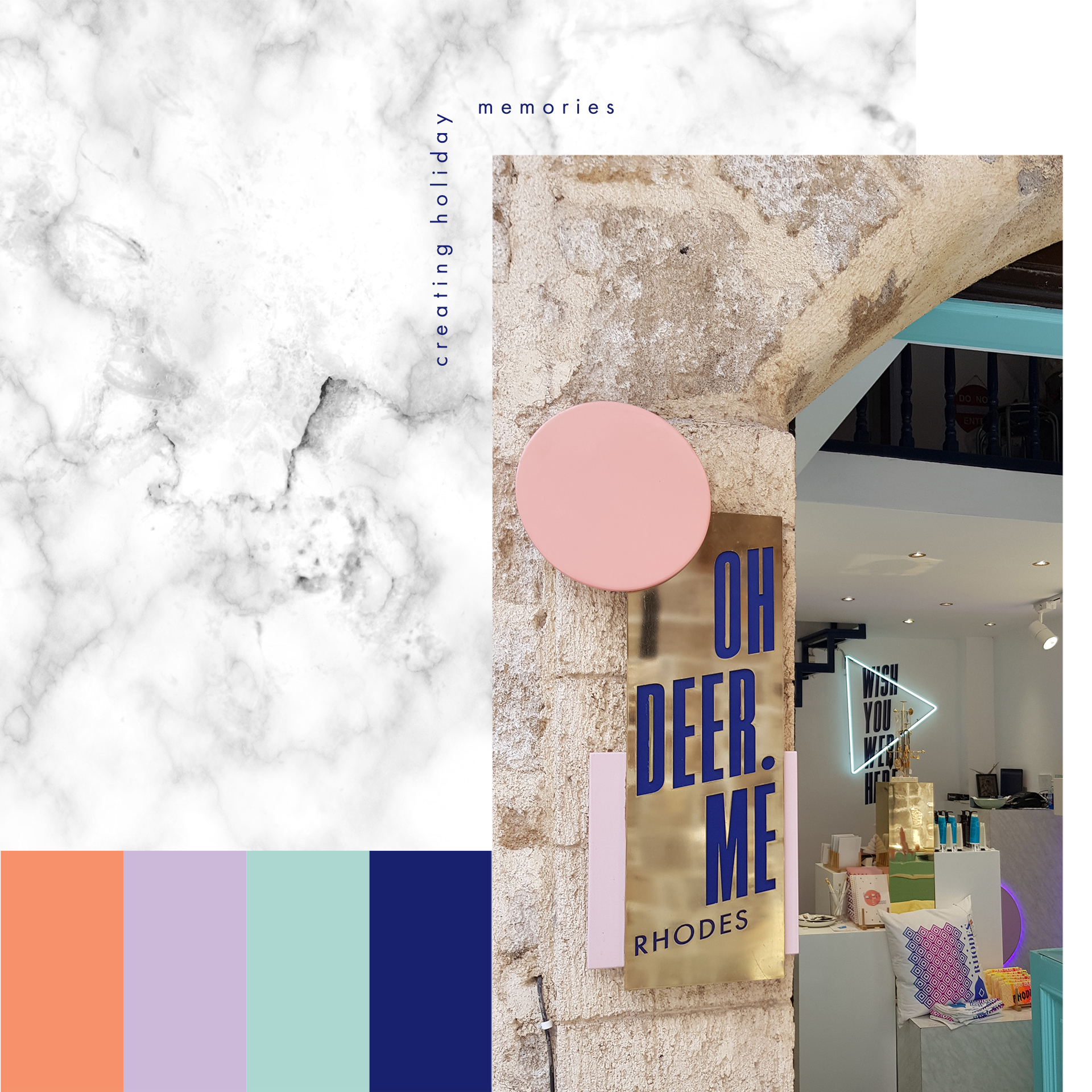In 2017, the owners wanted to open a contemporary souvenir shop in the island of Rhodes, Greece. A shop that meant to differentiate from the other souvenir shops on the island. It focuses to create unique, limited edition souvenirs.